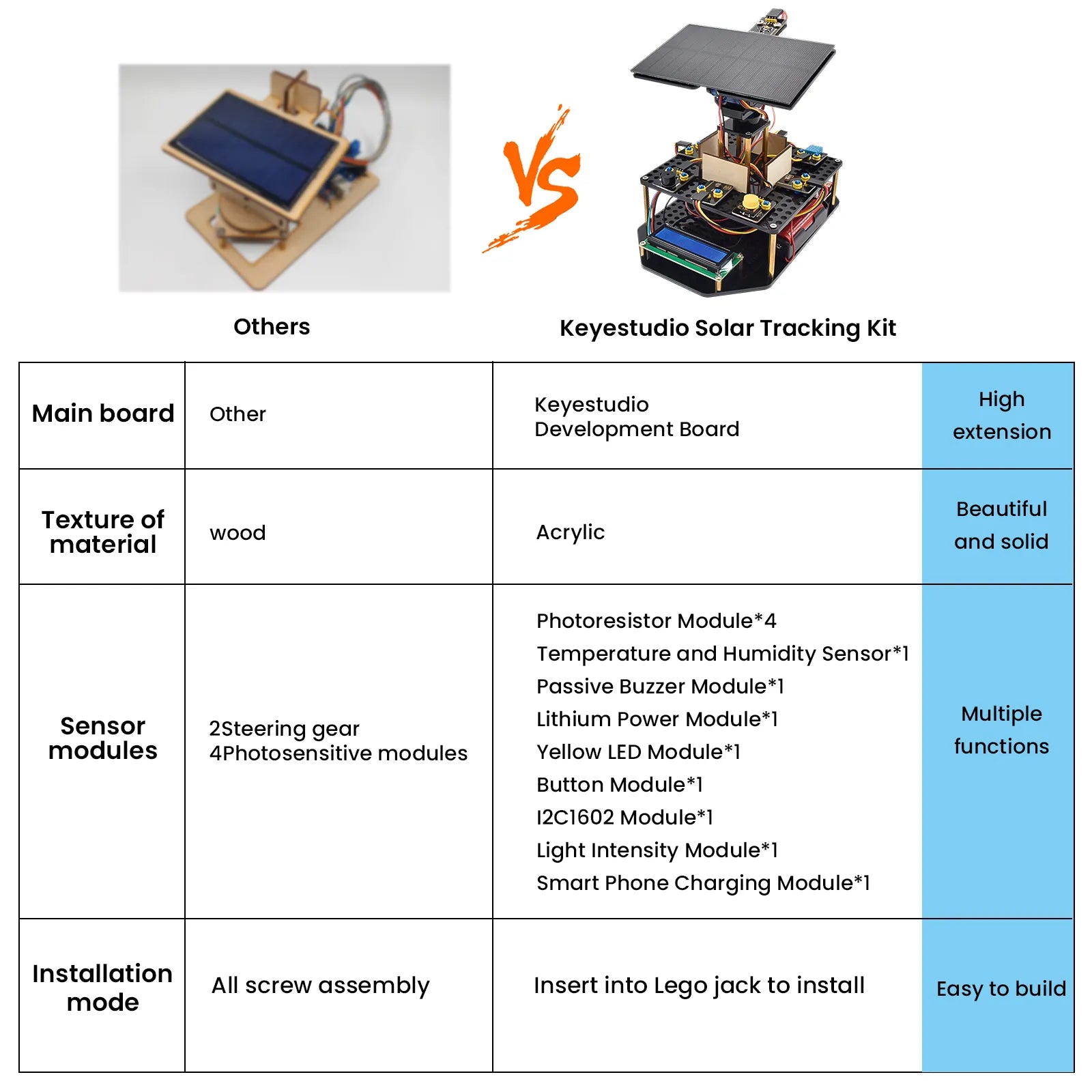 This solar tracker kit is designed to teach the basics of solar energy, electronics, and programming. Ideal for STEM education, it enables hands-on exploration of renewable energy and sensor-based automation.