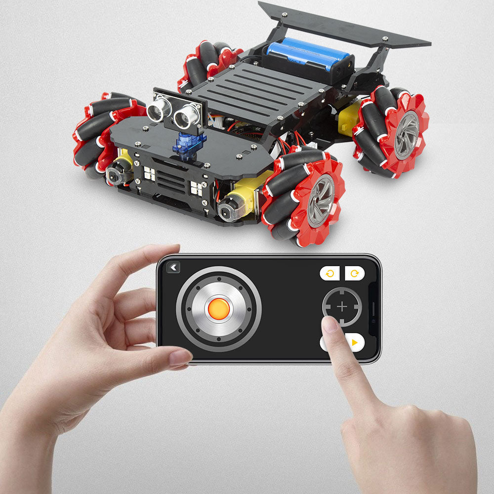 This DIY robot car kit features Mecanum wheels for full-range movement and hands-on learning in robotics and engineering. Ideal for students and beginners, it encourages creativity through programming and hardware expansion.