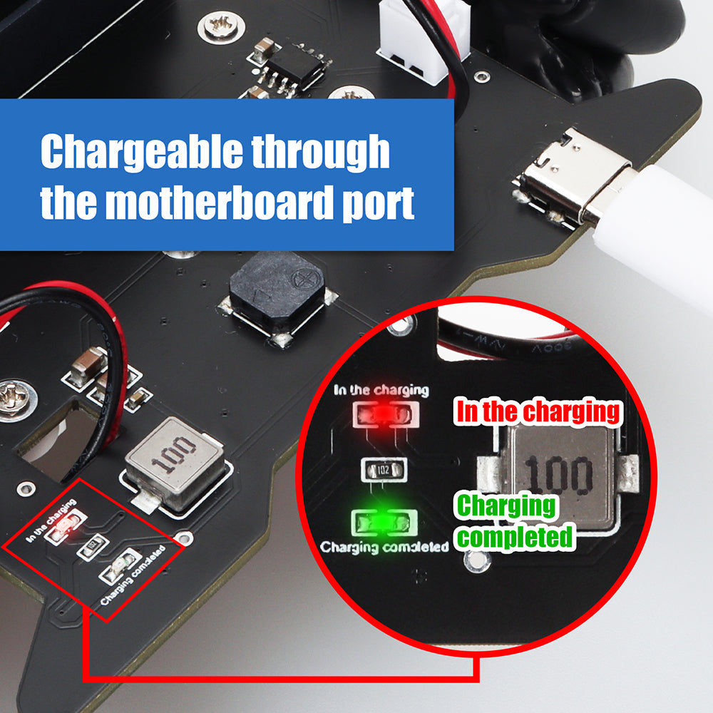 Drive System: 4WD with N20 geared metal motors (6V, 300 RPM)