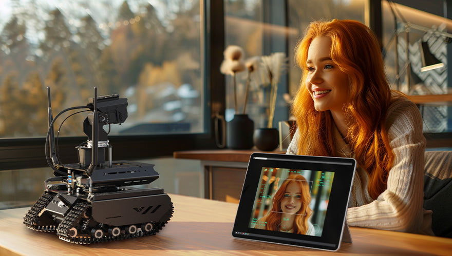 This off-road tracked AI robot platform is designed for experimentation, learning, and advanced robotics applications. It features dual controllers and a modular, open-source architecture for flexible development.