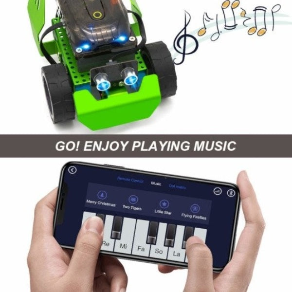 This robot building kit is designed for students and beginners to learn robotics and coding. Featuring a durable metal frame and a combination of graphical and Arduino programming, it’s ideal for hands-on STEM education.